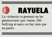- Bullying, delito graveLuis RojoUno se pregunta qué espera nuestro flamante poder judicial para tipificar la práctica del bullying como delito grave que no alcance fianza, así sea aplicado a menores de edad. Solo castigando con cárcel a quienes lo cometan se detendrá esa práctica infame.